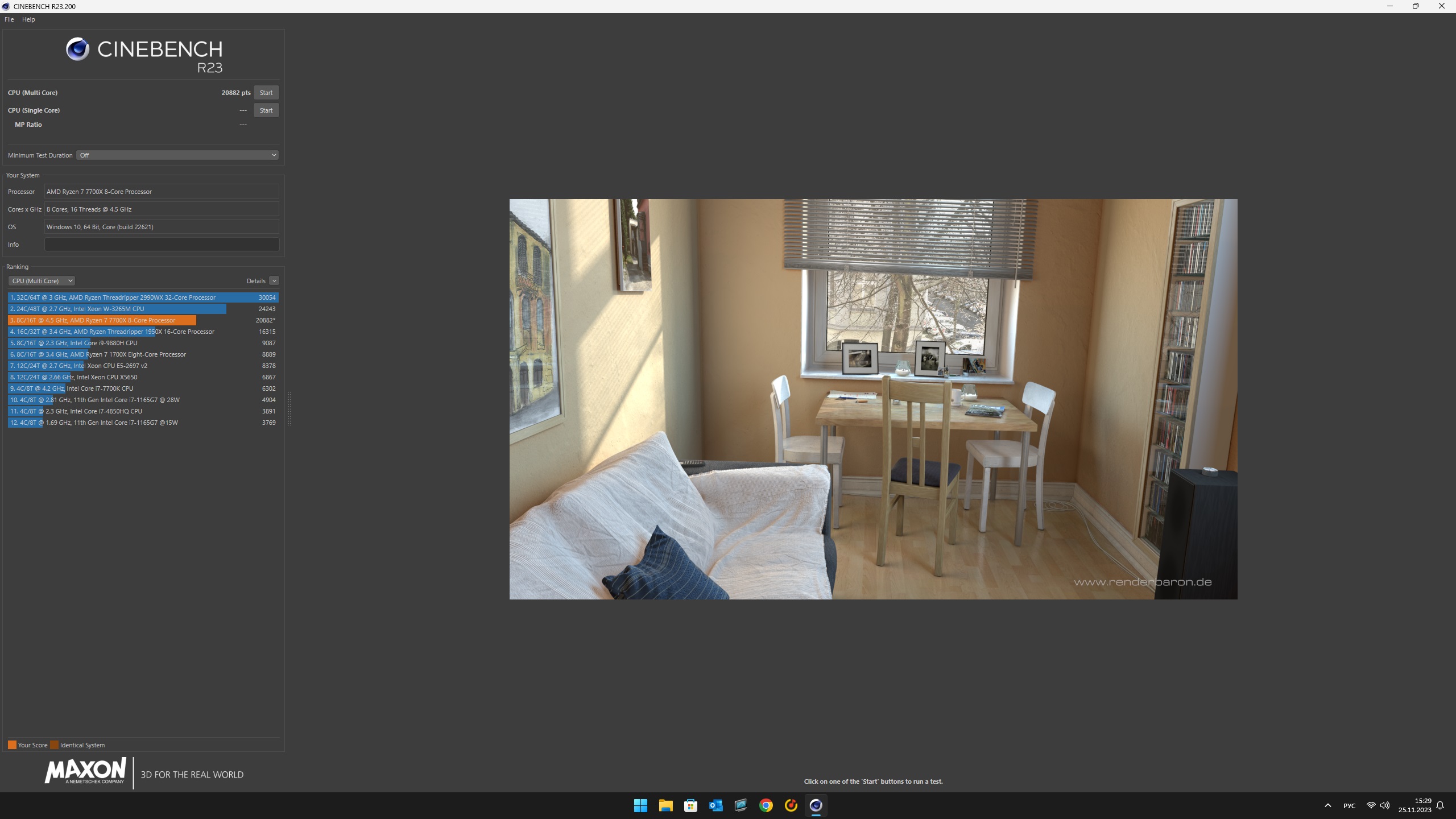 Народ, всем привет! Выложите, пожалуйста, результаты cinebench r23 на разогнанном рузене 7700х. Очень хочется знать сколько попугаев могёт такой в умелых руках. Желательно на воздухе, на воду денех нет) Планирую стать владельцем 7700х! Спасибо заранее!