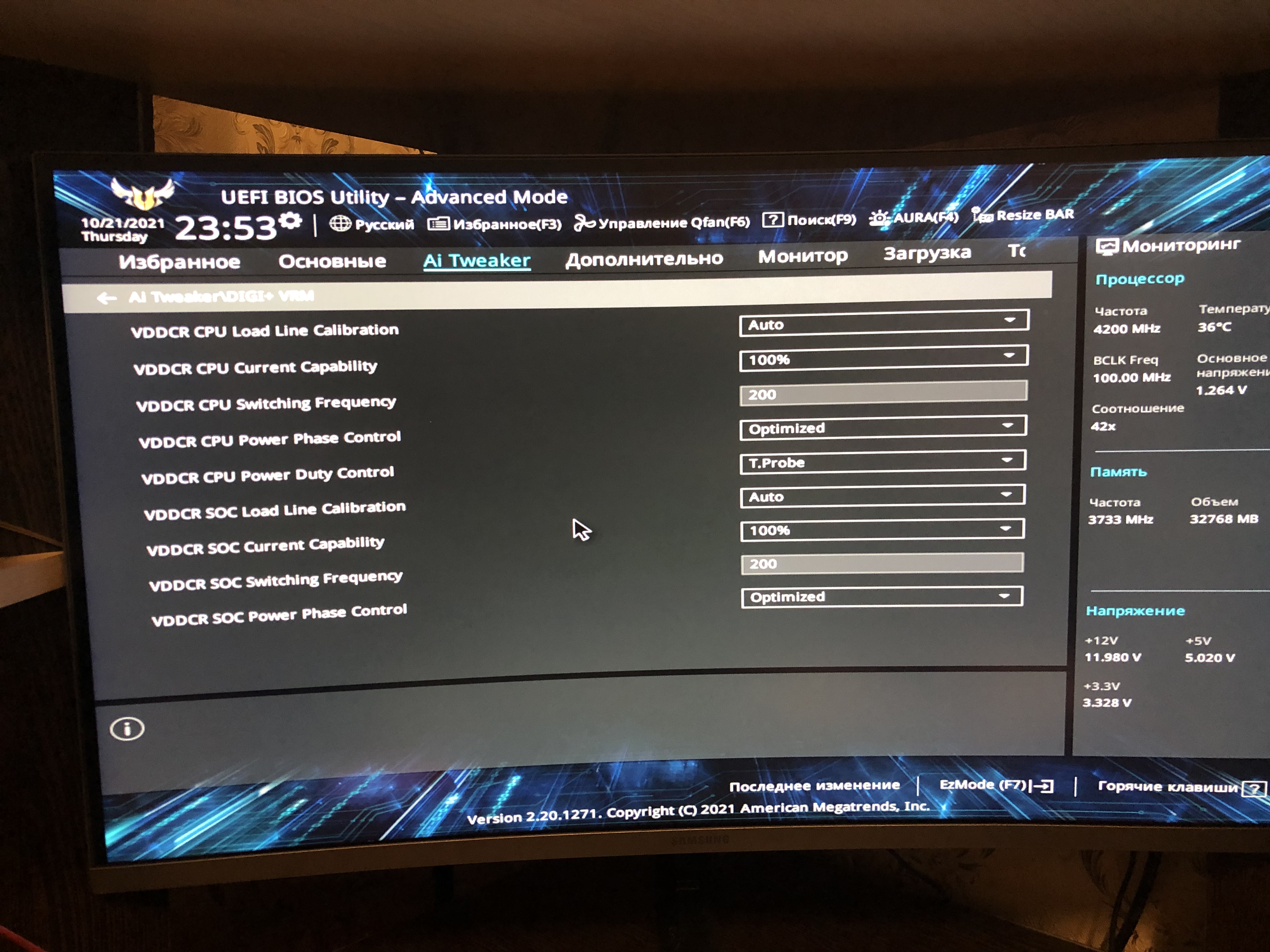 вот в первой строчке LLC 4 во второй 120 в третей максимум частоты и на один шаг вниз и можешь напряжение на ядра на один шаг в низ выставить точно а то и ещё ниже по сути думаю 1.262V если линкс проходить не будет из-за напряжения то во второй строке в биос выставить 130