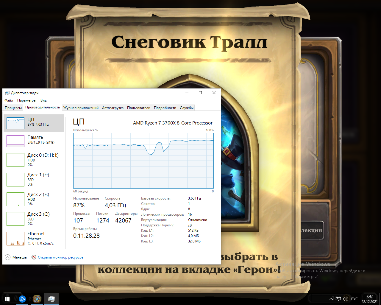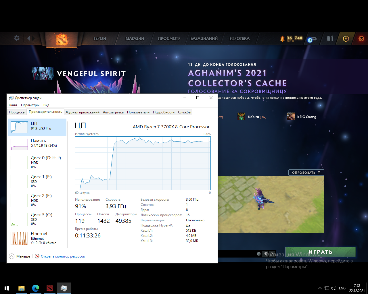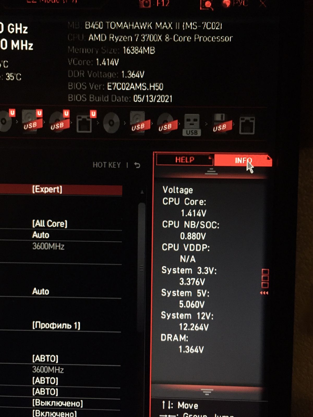 NothingToSayBeyound Чтобы шестнадцатипоточный зен2 в сотку долбился...что за игра? Как выше посоветовали проверьте сколько ядер видит винда. Прям в диспетчере задач посмотрите. По поводу нагрева смотрите какое напряжение при нагрузке на все ядра во первых, и какие лимиты в биос стоят. По умолчанию они могут быть кстати завышены. Ну то есть даже если всё на авто можно попробовать поставить стоковые значения вручную TDC/EDC/PPT для 3700X.
