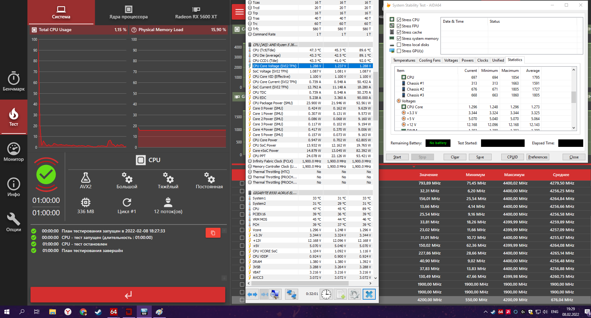Всем привет! У меня Ryzen 3600, был в ручном разгоне 4200 при напряжение 1.17v. Одиноким вечером решил разогнать его и пройти тест на стабильность. Взял 4.4 при напряжение 1.296v. Это нормальные результаты? И то что у меня в простое теперь будет всегда 1.296v в этом нет ничего плохого? Частоту не сбрасывал, max powers 94w, напряжение soc 1.1, LLC все на auto. Скрин немного кривой получился