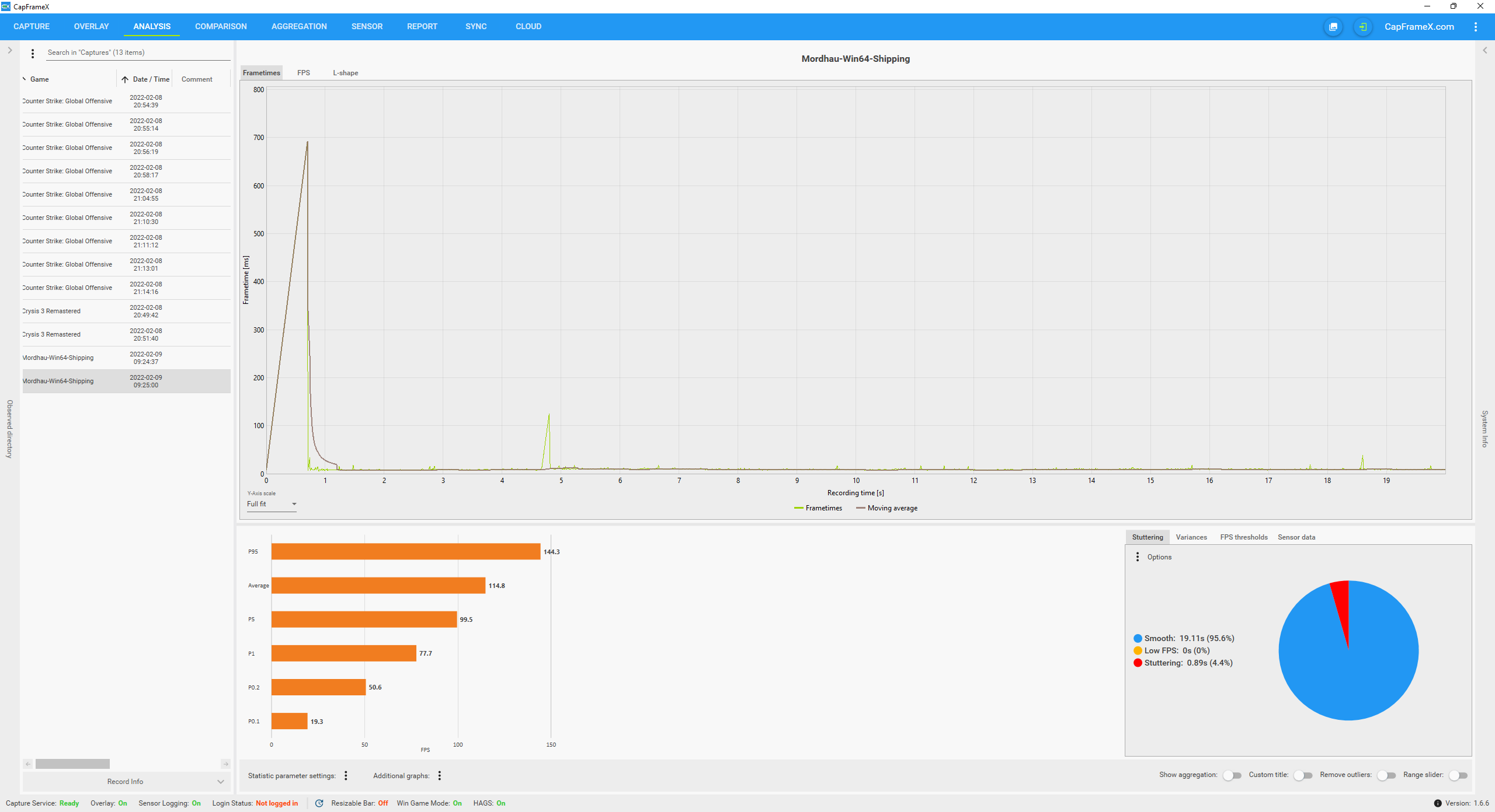 Также приложу скрины с CapFrameX двух игр, Mordhau и CS GO (В КС не играю, просто в такой игре и фризы..?)
