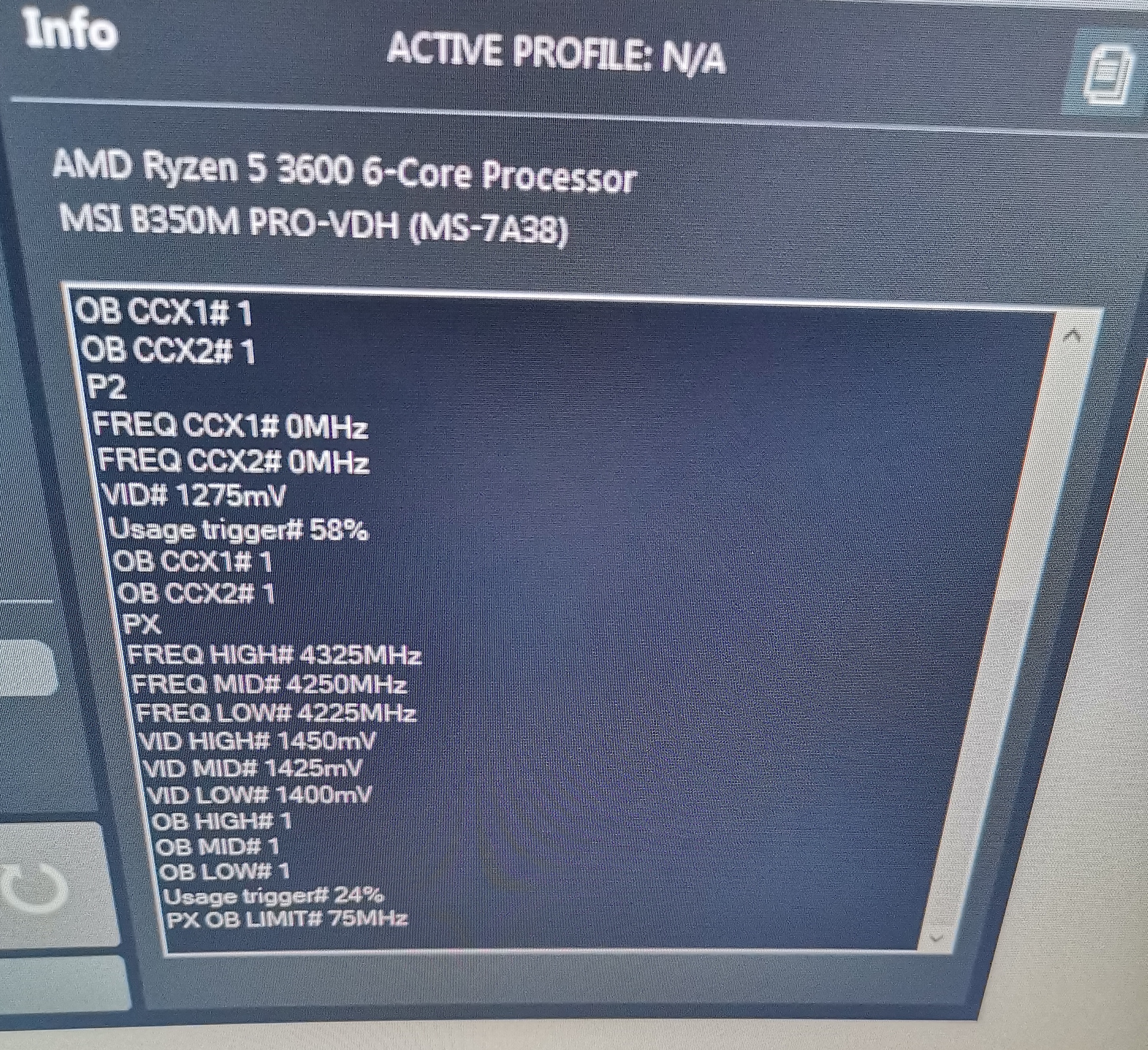 Всем привет, проц 3600 из первых партий на msi b350, года 3+ ему наверное уже. Сначала сидел на пресижн бусте, потом на стоке в авто, сейчас ради интереса посмотрел вроде мода либо гнать 4300, либо лочить 4200 на минимальном напряжении.