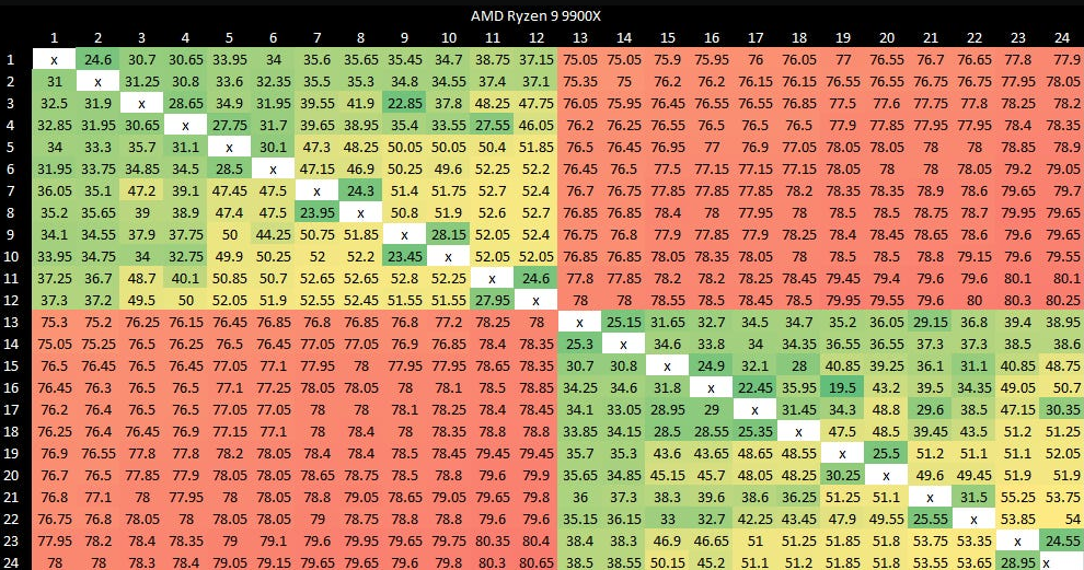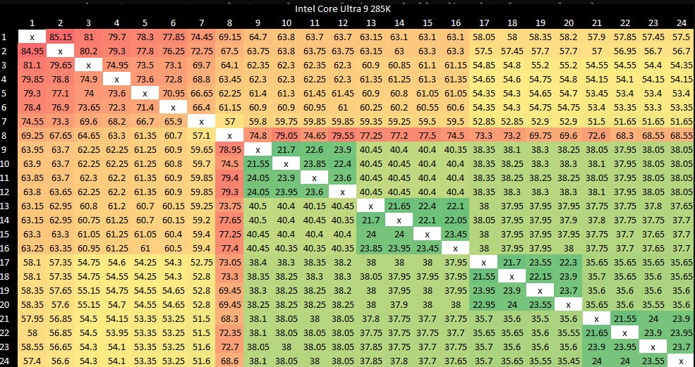 У АМД межъядерные задержки в 12-16 ядерниках главная причина почему они не дают прироста в большинстве игр, а иногда и отстают от одночиплетных 8 ядерников. Интел скатилась до уровня АМД в монолитном кристалле(все ядра на одной плитке). Разве что задержки плавно от одного ядра к другому растут. Это на залоченном 13500 E-ядра актуальны, а на разгонном проце такая же многопоточная производительность на 8 ядрах достигается. Ну и чем тогда 14 ядерный проц лучше 8 ядерного? Он хуже во всём, разве что чуток энергоэффективнее