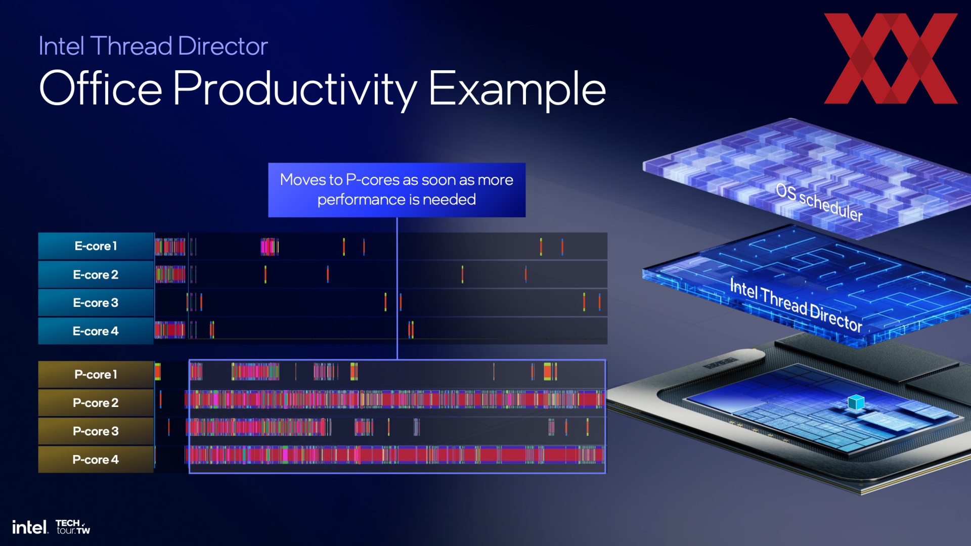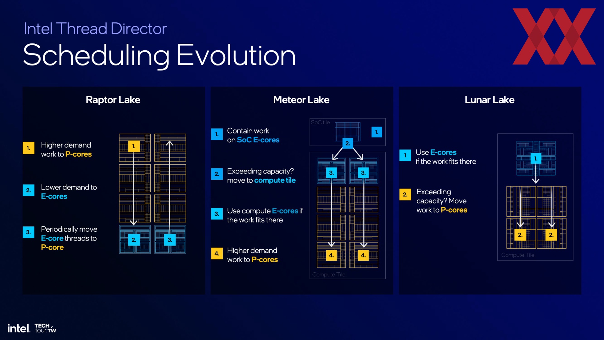 Планировщик дорабатывался совместно с Intel и работает настолько хорошо, насколько это в принципе возможно вообще. Для того, чтобы этого «недостатка» не было, планировщик должен знать тип нагрузки до того, как процесс будет запущен и начнет выполняться, что просто невозможно без индивидуально подобранных профилей. Если у процессора нет встроенного инопланетного разума и доступа к Силе для предсказания будущего. Очевидные же вещи.
