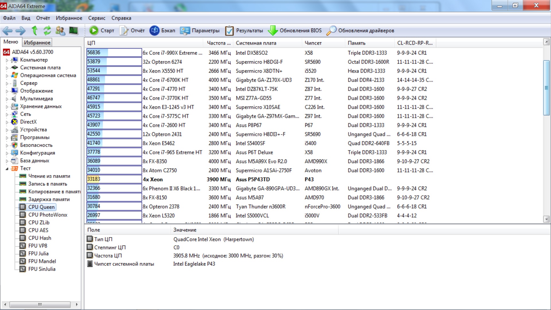 Ну как нет разгона, AIDA64 CPU Queen же показывает прирост с 25 тысяч до 32 тысяч попугаев? Скорее всего версия программы CINEBENCH разная, поэтому такая разница в результатах. Скачай последнюю R15 с оффсайта и проведи замеры. На скриншоте полная галиматья: Х5460 на частоте 3.6 ГГц набрал меньше очков, чем Е5420 на частоте 3.5 ГГц.