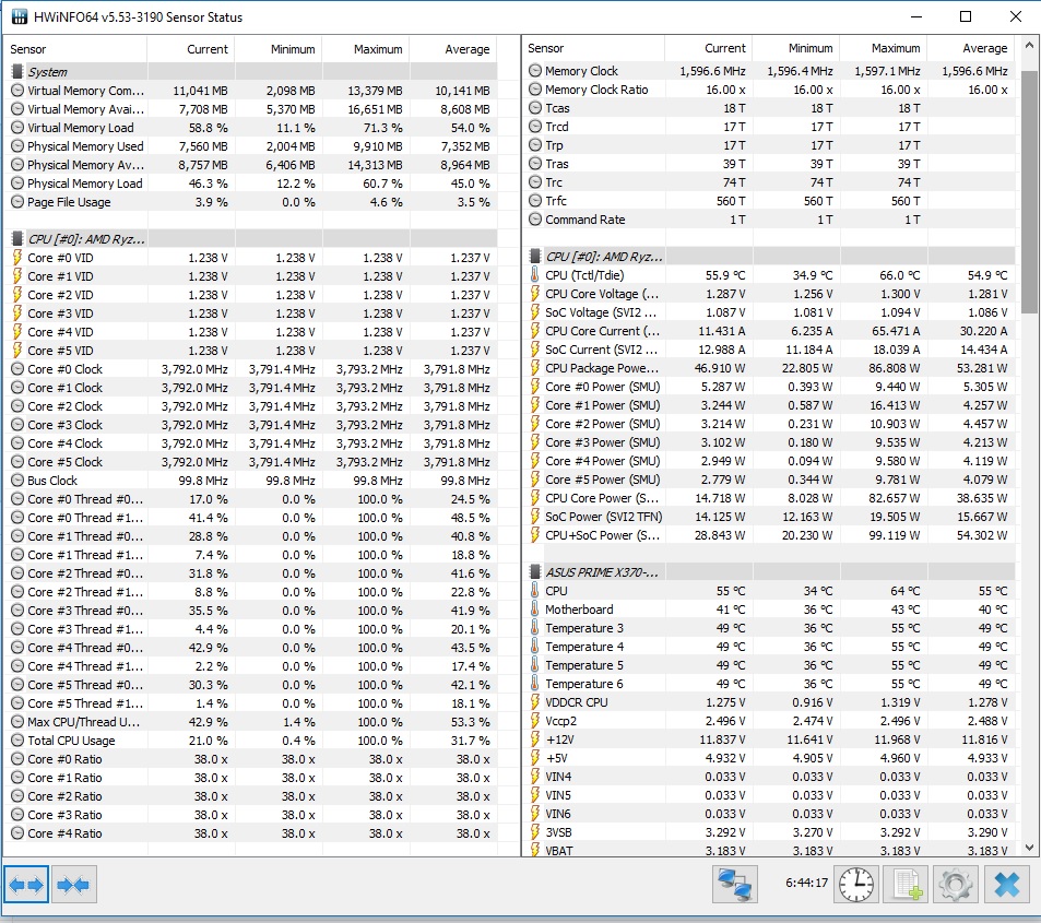 Народ, помогите разобраться с температурой проца. Хотел погонять свой 1800, и решил посмотреть температуру без разгона. Немного был удивлён, когда запустил aida64 и прога в простое показала мне 13 градусов. При часовом стресстесте Аида показывает 48 градусов. Решил проверить hwinfo64, там результаты такие: В нагрузке (час стресса аидой) CPU (Tctl) 84C CPU (Tdie) 64C CPU 48C В простое CPU (Tctl) 51C CPU (Tdie) 31C CPU 15C Что из этого является реальным температурным показателем?