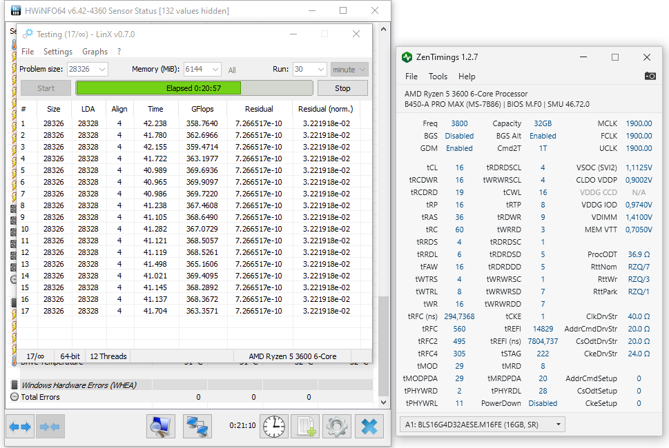Линпак не принципиален. Но если вы способны заставить его стабильно выполняться, то он достаточно показателен. Почти любой относительно тяжёлый бенч цп который подвержен изменению IF и памяти подойдёт для измерения производительности. Задача состоит в проверке наличия деградации производительности от переразгона. На этой шине применяется коррекция ошибок, там вообще сложно вызвать критическую ошибку (без переразгона), просто будет повторная отправка данных. В ZEN4 это "усовершенствовали", теперь молча, практически всегда без WHEA при перезагоне падает производительность, даже на 50% и при этом "работает". По-хорошему надо грузить не столько цп или память, сколько комбинированную нагрузку, но её сложно сравнивать на предмет деградации. Шина с большей вероятностью будет вызывать проблемы если у вас дополнительно нагрузка на карту, накопители, переферия, USB, подключение\отключение тех же USB. Поэтому я рекомендую не занимать ерундой и съезжать на 1 шаг от стабильного предела IF если она едет 1900+, или просто ставить 1866. Ну нет там существенной разницы, кроме потенциальной головной боли. Даже теоретическая разница такая, что сложно добиться нормальной погрешности для объективного сравнения.
