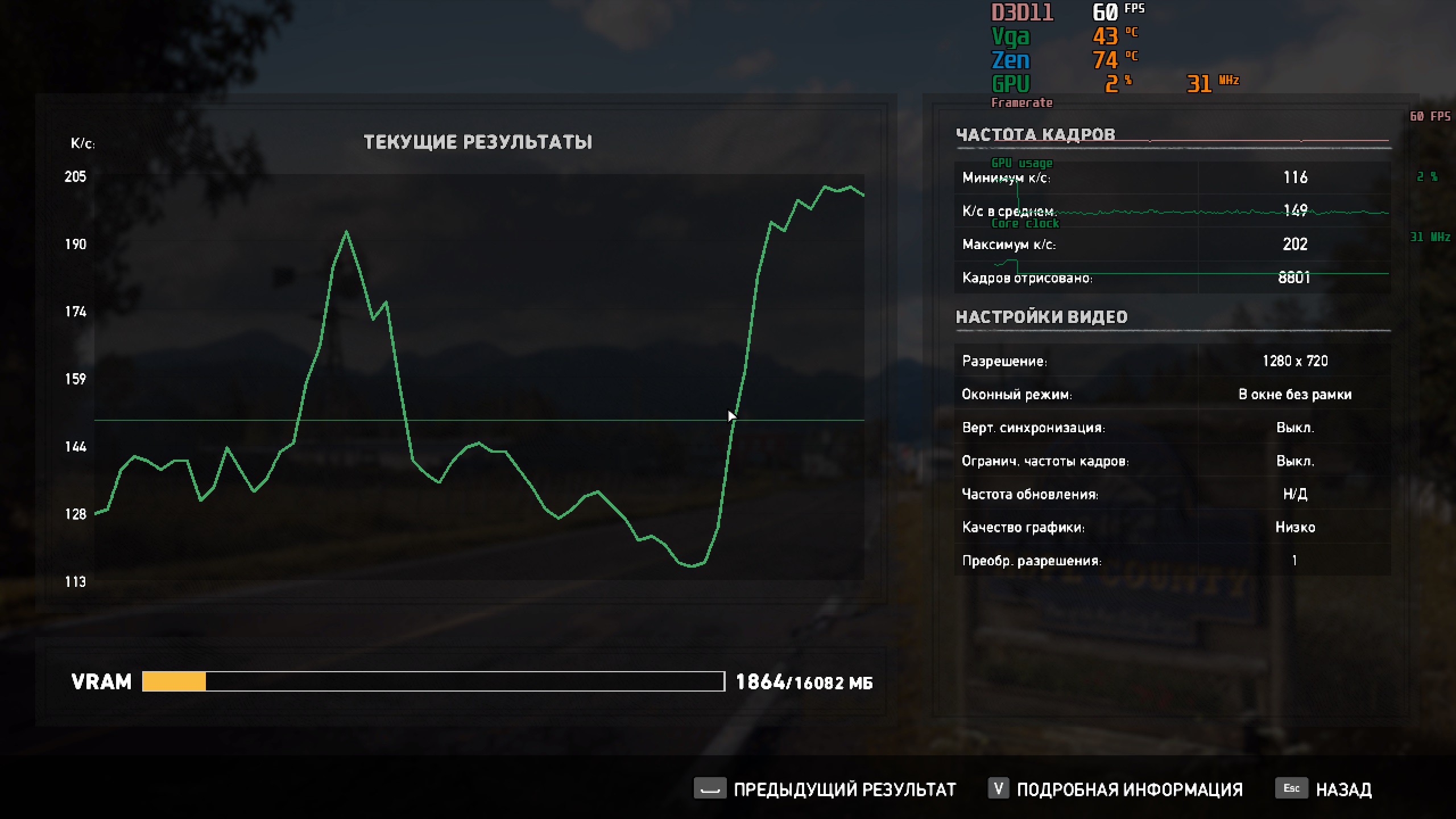 Прогнал FarCry5 с кучей мусора и прочей шляпы в фоне, плюс-минус тот же результат