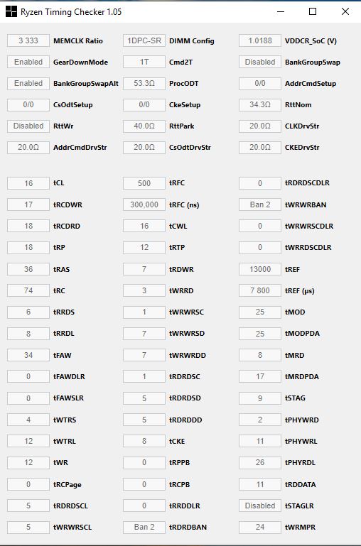В связи с переездом комплекта CJR от Кингстона (hyperx predators 3000 С15) на плату от MSI B350 и вроде бы свежим калькулятором 1.4.1 и агесой, начал снова их мучать. По традиции профиля CJR от калькулятора, вешали систему (может подходят только для отборных CJR?), но зато сочетание debug+xmp из тайфуна+Hynix MFR позволило дойти до 3333, 3400 уже не бралось, правда вольтаж уменьшен от рекомендуемого калькулятором плюс ProcODT + RTT использовались другие, ну и Power down disabled, Gear Down enabled (также списано из CJR профилей калькулятора)