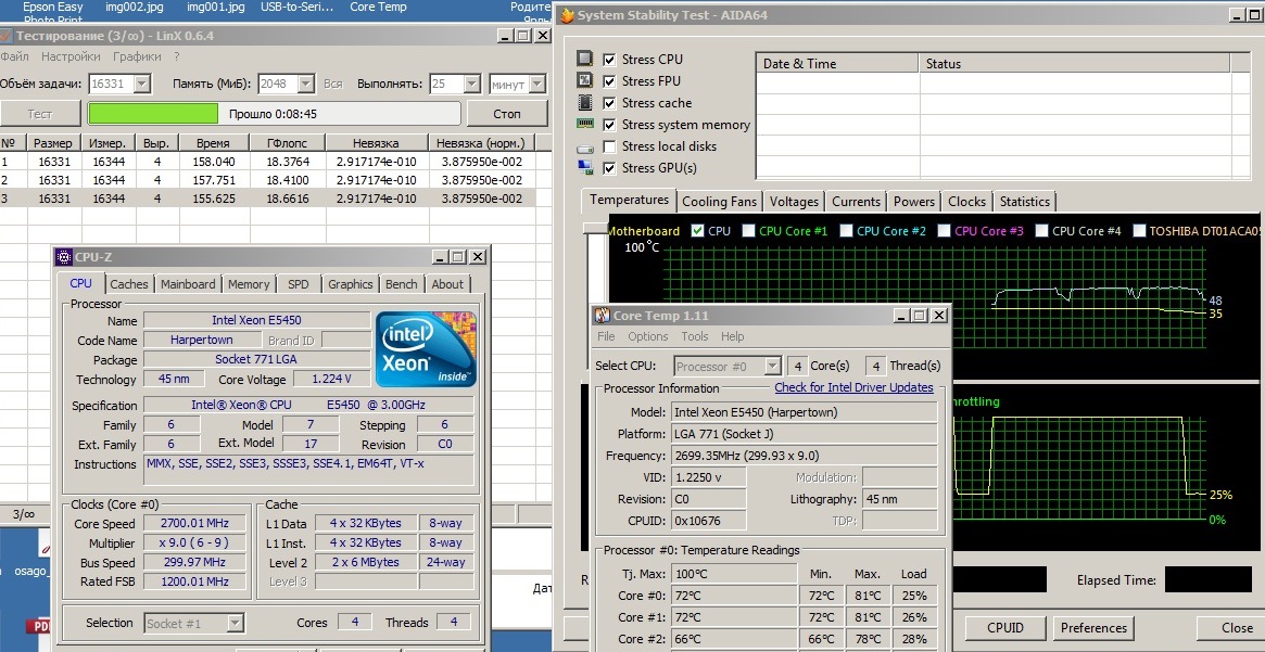 Ребята подскажите, не могу заставить работать E5450 (С0) даже на штатных частотах. Бсодит постоянно.Думал дело в напруге, ставил 1.3 и стандартные 3GHz - все равно не помогает.В Linx гигафлопсы вообще плавают, сегодня 40, завтра 18, послезавтра 33-35.Биос естественно шил. Может че перегревается да процессор тролит. Покупал в году еще наверно в 14, почему не купил E0 не знаю((. Мать p5q