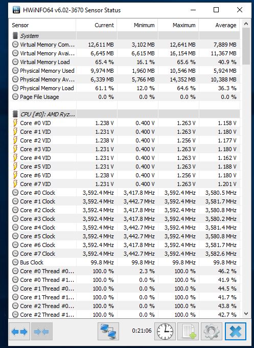 - Обычно поставляется в коробке с системой охлаждения Wraith Spire RGB (это круглая конструкция из целого куска алюминия с медной вставкой-испарительной камерой в основании и вентилятором с кольцом разноцветной подсветки, крепится к задней пластине разъёма AM4 четырьмя винтами). - Штатно имеет базовую частоту 3.0ГГц, частоту 3.2ГГц (технология Turbo Boost) при обычной многопоточной нагрузке (Blender n-cores render) и 3.75ГГц (технологии Precision Boost и XFR) при однопоточной нагрузке (Cinebench R15 single core). - Штатное напряжение питания 1.1875В. Может возрастать до 1.3В на отдельных ядрах во время работы Precision Boost и XFR. - Очень энергоэффективный, требования к СО (TDP) - всего 65W. Энергопотребление порядка 10Вт в простое и 85Вт в обычной многопоточной нагрузке (Blender n-cores render).