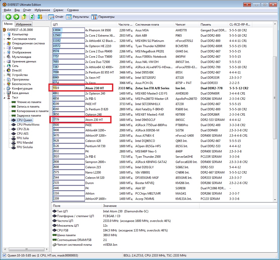 На нетбуке Acer Aspire One Atom N270 почти так же бегает, на 2300 MHz. Windows 7 Pro урезаная довольно шустренько бегает. Правда без Aero, естественно. И с драйверами под видео твикнутыми с 4pda взятыми. Ну и XP конечно второй системой. Получается по ощущениям как на Pentium 4 3000 MHz, примерно. Так что гонятся, ещё как
