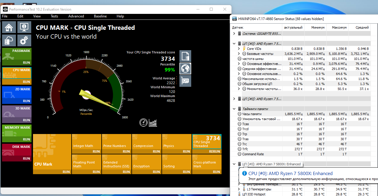 PS ввиду не полной стабильности на 4700Мгц (во всех играх стабильно, за исключением ACC при полной загруженности ботами (~38 машин) выкидывало на раб стол), я зафиксировался на 4600Мгц и подспустил память с 4000 на 3800.