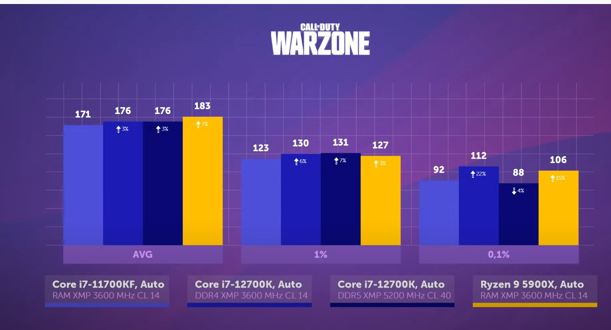 Тут конечно нет 11 серии , но что то мне подсказывает , что 1 и 0.1 у него здесь будет выше , чем у зен3. Зачем Вы пытаетесь опровергнуть очевидно слабую точку архитектуры зен? В целом я согласен, что в соревновательных дисциплинах (как варзон) 1 и 01 важнее , чем в синглах. Тем не менее , если взять средние значения, 1 и 01 у зенов будет ниже. По крайней мере, что я наблюдал. Вдобавок ИМХО 10 или 9 серия интел больше подходит для сравнения с зен2 , где все будет не в пользу последнего.