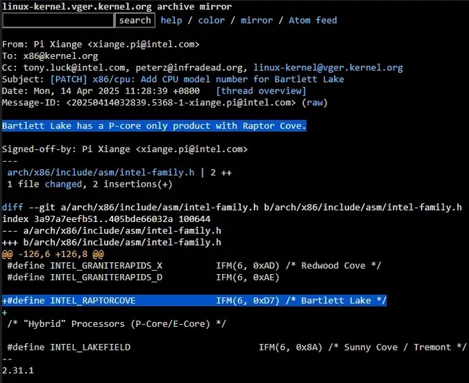 16 апреля 2025 Согласно информации из патча для ядра Linux, эти процессоры нацелены на использование в существующих материнских платах с сокетом LGA1700 (серий 600 и 700) после обновления BIOS. Предполагается, что топовая модель Bartlett Lake-S может иметь до 12 P-ядер и 24 потоков. В основе новинки, лежит архитектура Raptor Cove, которая также используется в 13-м и 14-м поколениях процессоров Intel. Сообщается о планах выпуска версий с TDP 125 Вт, 65 Вт и 45 Вт. Ожидается, что процессоры Bartlett Lake-S могут быть анонсированы в третьем квартале 2025 года, возможно, на выставке Computex. Хотя изначально платформа Bartlett Lake была представлена для сетевых и периферийных приложений (NEX), появление версии только с P-ядрами может быть интересно геймерам. тыц