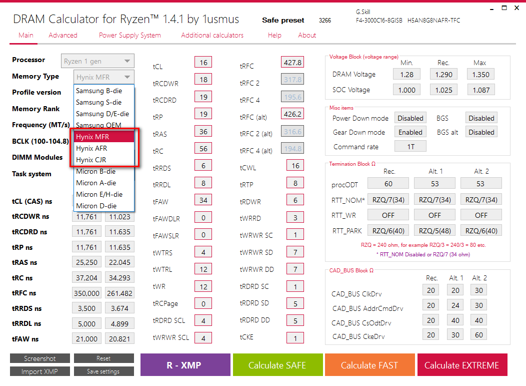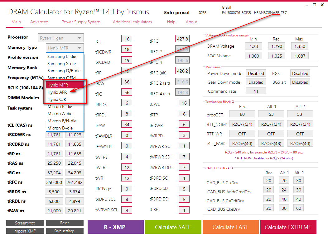 Доброго вечера. Ребят подскажите пожалуйста, имею память G.Skill Aegis 16GB DDR4 16GISB K2 3000Mhz C16 Рассчитал через калькулятор, но не уверен какую именно "Memory Type" выбирать.