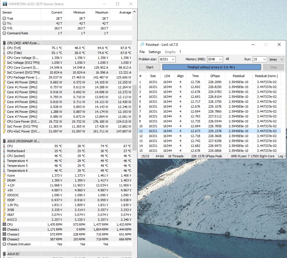 Мало ли Быть может у вас есть кастомная СЖО , а вы ее не упомянули. Специально запустил тест сейчас. Хотел в довесок к тому посту, но вы меня опередили. Ну а что не ответили про биос или номинал (это я про 1.47в), так же как и про едс тротлиннг. У меня 1.35 биос, 1.417 мать. 191 ватт , если верить хвинфо охлаждает ноктуа, сейчас открыт балкон , поэтому 74 радуса.