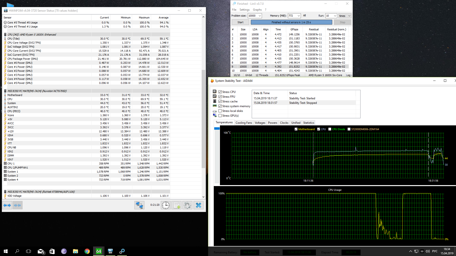 Здравствуйте. Решил погнать свой 1600х и вроде бы вышло вполне удачно. Но смущает странная "пика" во время стресс теста в аиде. Отчётливо видна на графике.