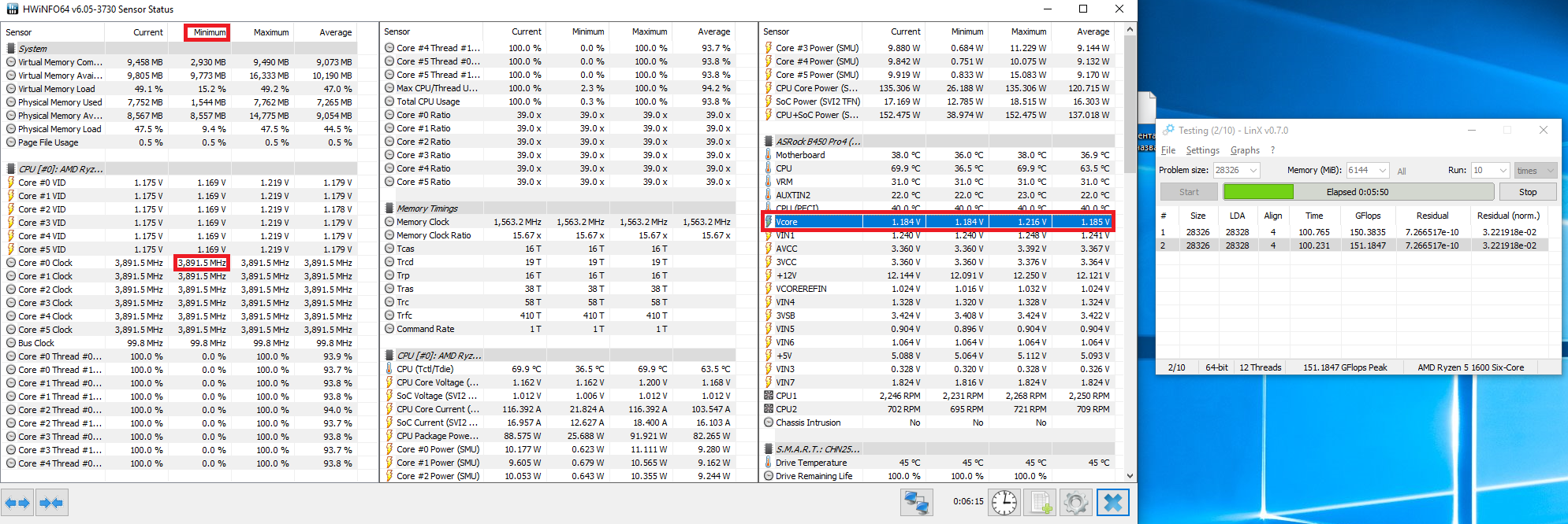 Я так понимаю что недавно произведенные процессоры держат частоту 3900 МГц при 1.2V+. Например у меня 1.2V. Пару человек тут писали что у них чуть выше чем 1.2V. (Напряжение специально проверял мультиметром. Вдруг комп врет)