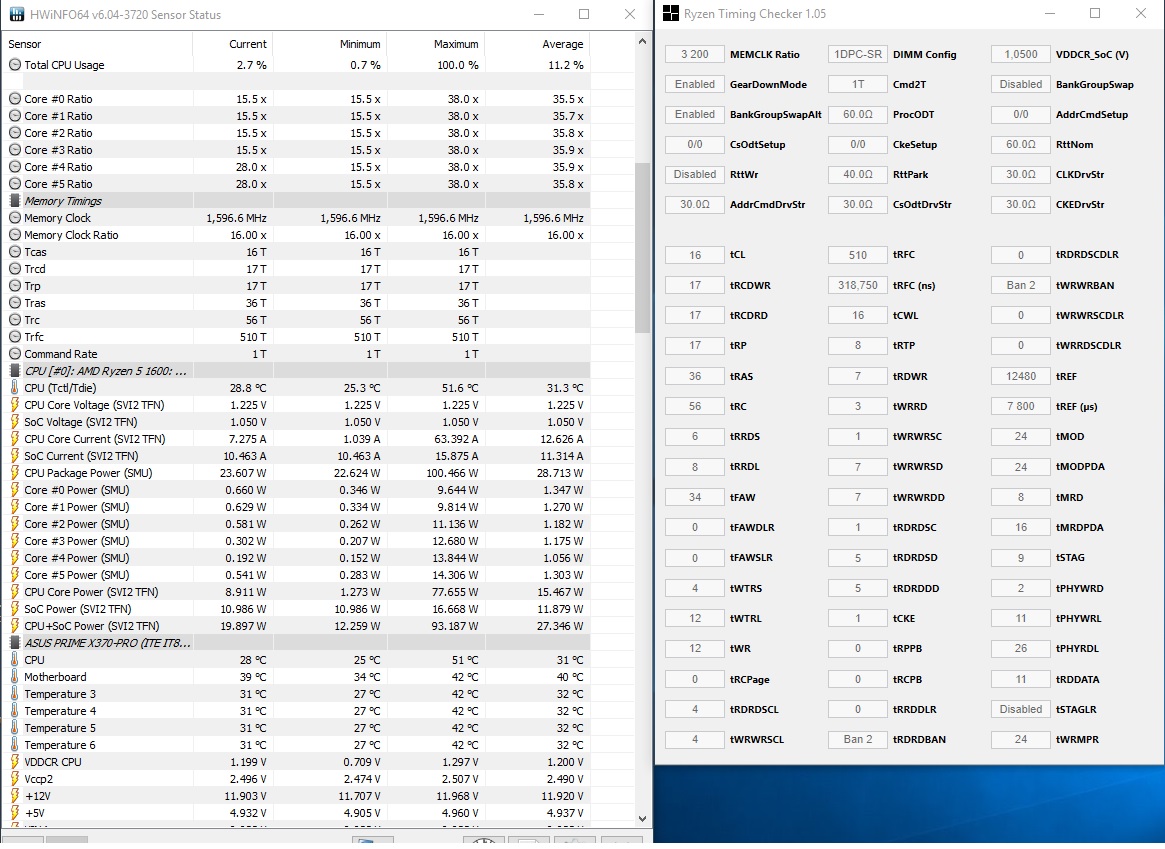 Всем привет,столкнулся с такой проблемой.Купил ryzen 5 1600 в январе месяце,он работал в связке с памятью от crucial(без разгона на 2400).В марте обновил пк(Gigabyte b450 aorus pro,rtx 2060)и поставил память HyperX Predator 2x8 3200(чипы Hynix mfr).Проблема была в том что при частоте выше 2400 в играх были постоянные вылеты и бсоды.Как бы я не игрался с таймингами/субтаймингами и напряжением-проблему решить так и не смог.Переделал кучу тестов в аиде(проходил все тесты кроме теста памяти)и OCCT(краши на линпаке и power supply test).Сегодня отнес в сц,прошили биос.Мать просто слетела с катушек.Частота проца(в простое) скакала от 0,4 до 3,7гц,напряжение доходило до 1,4в.На выставленные настройки в биосе было плевать,постоянно зависала винда.Поставили другую мать и проверили на 8 различных китах 2х8.Ничего не изменилось,только при частоте 2133-2400 более менее стабильная работа.Сказали-брак процессора.По какой то причине он не может работать с памятью выше 2400.Хотя разгон 3,8 при 1.33 держит,температуры в норме.Хочу спросить,кто нибудь сталкивался с подобным?Если так,то заменили ли проц,или вернули деньги?Вообще какой шанс словить такой брак?