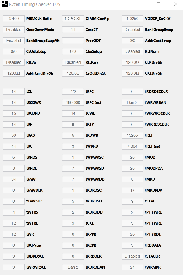 Нужна помощь. Мой конфиг: Ryzen 5 2600@3.85/Asus PRIME B450-PLUS/2*8GB 2666MHz Samsung m378a1g43tb1-ctd/Sapphire RX 580 8GB Проблема заключается в разгоне памяти. Пытался получить 3200, 3000 и 2933MHz через калькулятор, но система просто не стартует и пищит мать. Делал всё по гайду 1usmus. Естественно, я перебрал все альтернативные значения. Помогите, пожалуйста решить мою проблему. Скрины калькулятора и TB прилагаются.#77#77#77
