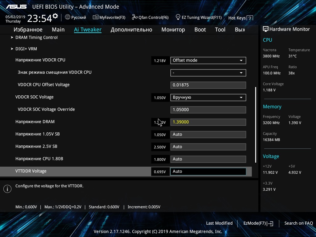 Так я разобрался)) Это к тому что вы говорите ,что 1.219 у меня выставлено в биосе.