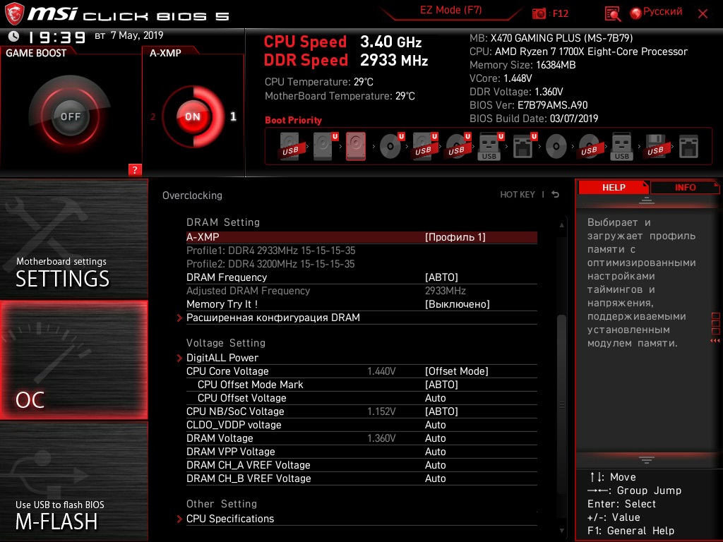 на данный момент на память только выбран XMP профиль 2998MHz Сл15, 1,35в. Больше ни чего не менял .