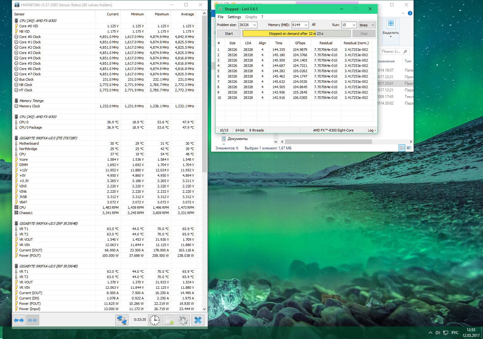 пришел долгожданный 8300 небольшая мечта еще начиная с выхода 8120. поставил, отключил все сберегайки, турбо и т.п., оставил только что-то связанное с high performance. по аиде CPU VID 1.1125 V, Северный мост VID 1.1625 V. пока поставил 4200 (интересно сравнить с феномом на такой же частоте) и 1.31V. не многовато для него напруги? только запустил 3дмарк11, успешно. мафия3 отлично идет. температура 27-47 при оборотах 950-1650.
