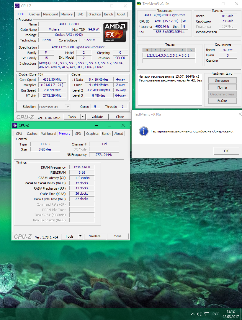 Есть системник с Asrock 970m pro3 + fx-6350 и две планки памяти kingmax 1600 dual rank (win 10) 4200 частоту с напряжением 1.275 взял без проблем (CPU NB 2200, HT 2200) напряжение на CPU NB 1.2 v. Как только ставлю кп на 2400, тут начинаются проблемы....при запуске винды мигает серый экран и на время появляется надпись добро пожаловать.... Напряжение на кп повышал до 1.25.... Тоже самое, назад ставлю на 2220, то все ок! Теперь думаю в чем проблема, может стоит на live CD проверить? Чтобы точно знать, что не в ОС дело? У кого какие соображения?