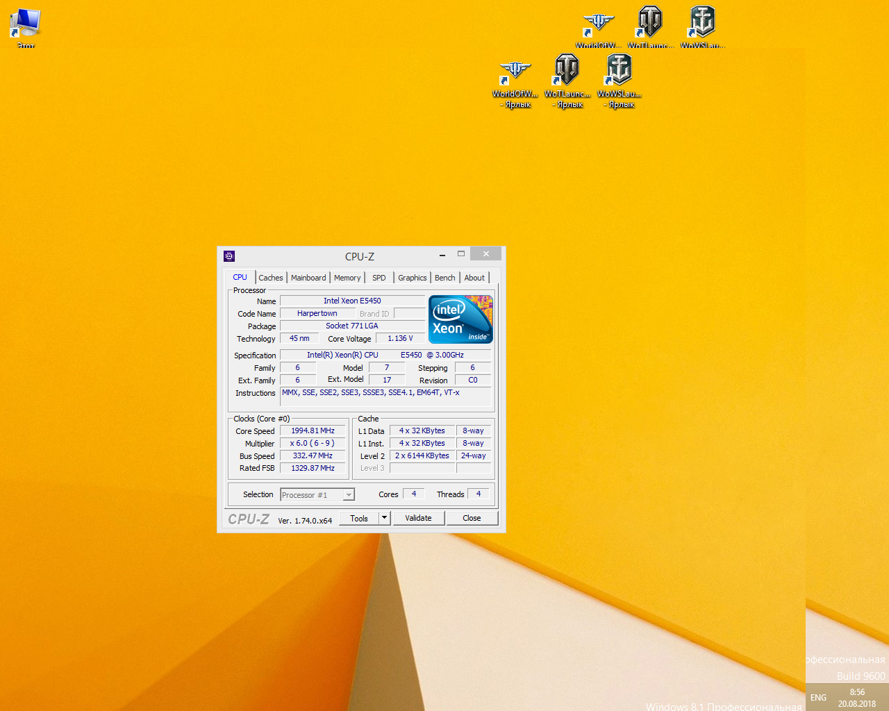 Установил xeon е5450,прошил биос,Переустановил винду 8.1. незагружаются игры например Варгейминг.постоянно вылазят ошибки типа"критическая ошибка неудалось распаковать обновления или установить их..а ставлю старый пень е 5700 То все нормально работает.