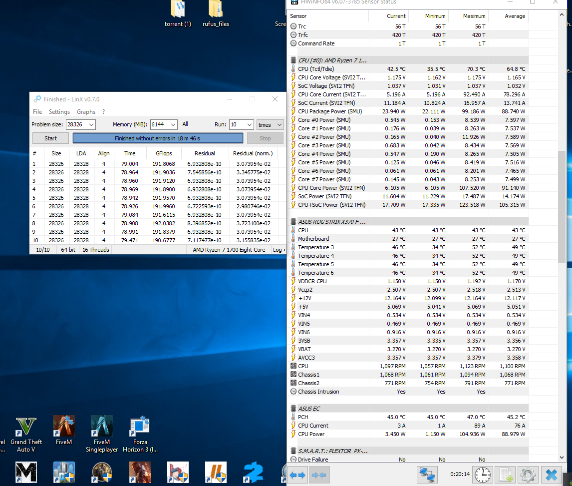 - Обычно поставляется в небольшой коробке без СО. - Штатно имеет базовую частоту 3.4ГГц, частоту 3.5ГГц (технология Turbo Boost) при обычной многопоточной нагрузке (Blender n-cores render) и 3.9ГГц (технологии Precision Boost и XFR) при однопоточной нагрузке (Cinebench R15 single core). - Штатное напряжение питания 1.35В. Может возрастать до 1.4В на отдельных ядрах во время работы Precision Boost и XFR. - Энергоэффективность средняя, требования к СО (TDP) - 95W. Энергопотребление порядка 13Вт в простое и 120Вт в обычной многопоточной нагрузке (Blender n-cores render). - По сравнению с R7 1700 имеет увеличенный промежуток XFR (100МГц вместо 50МГц), а также увеличенные технологией SenseMI показатели температуры на 20 градусов (например, 90 при реальных 70).