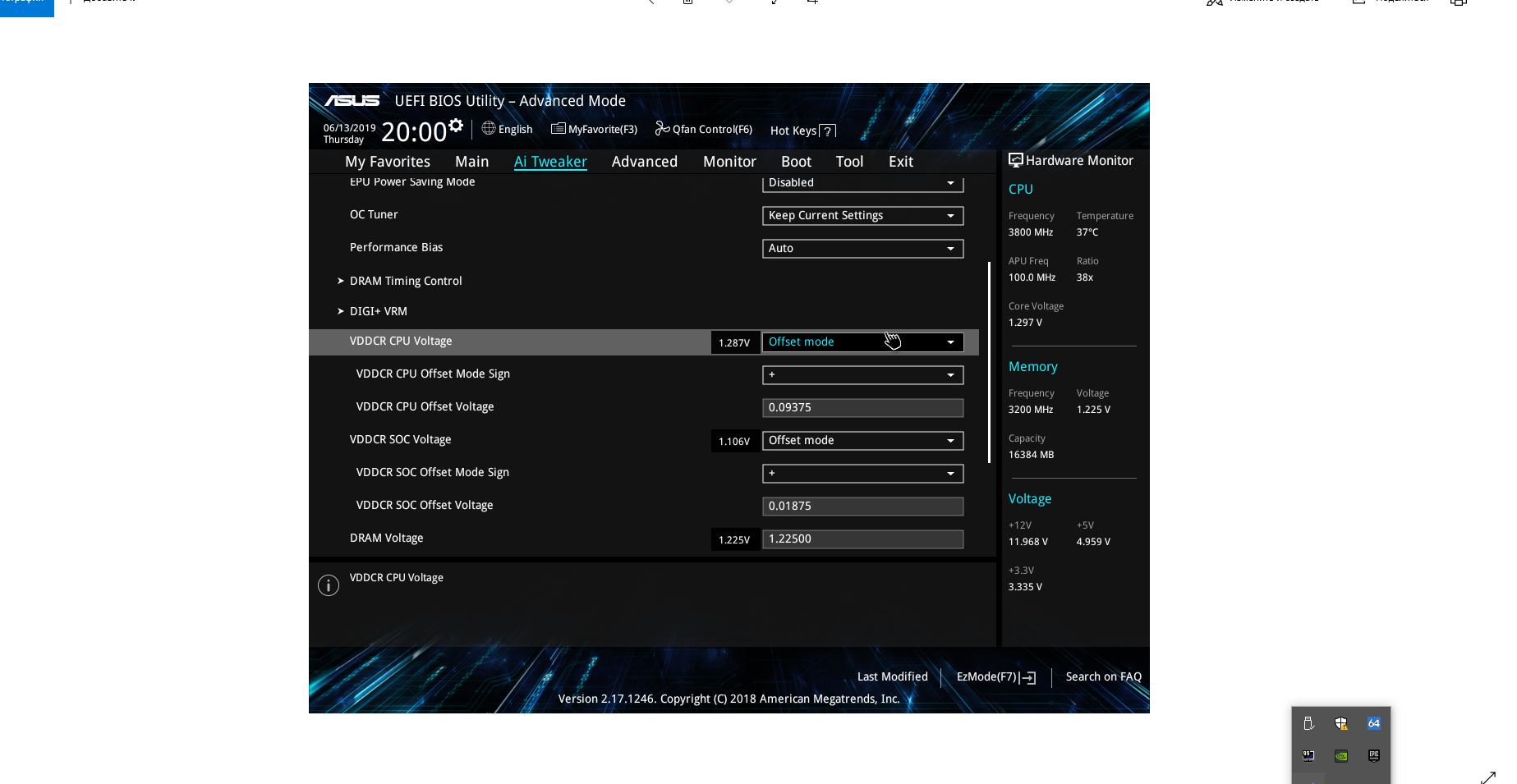 Поставил все тоже самое cpu напряженение стало 13.41