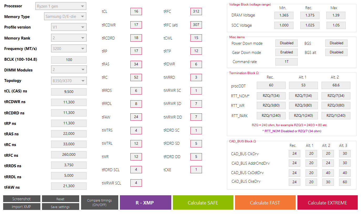 Ну справедливости ради, у меня тоже не один из вариантов калькулятора v1, v2 и debug не подходят. Раньше ближе всего был v2, но увы и ах со временем все равно ошибки. Hynix afr, dual-rank, приходится сидеть на 2933 16-18-18-18-38-56.