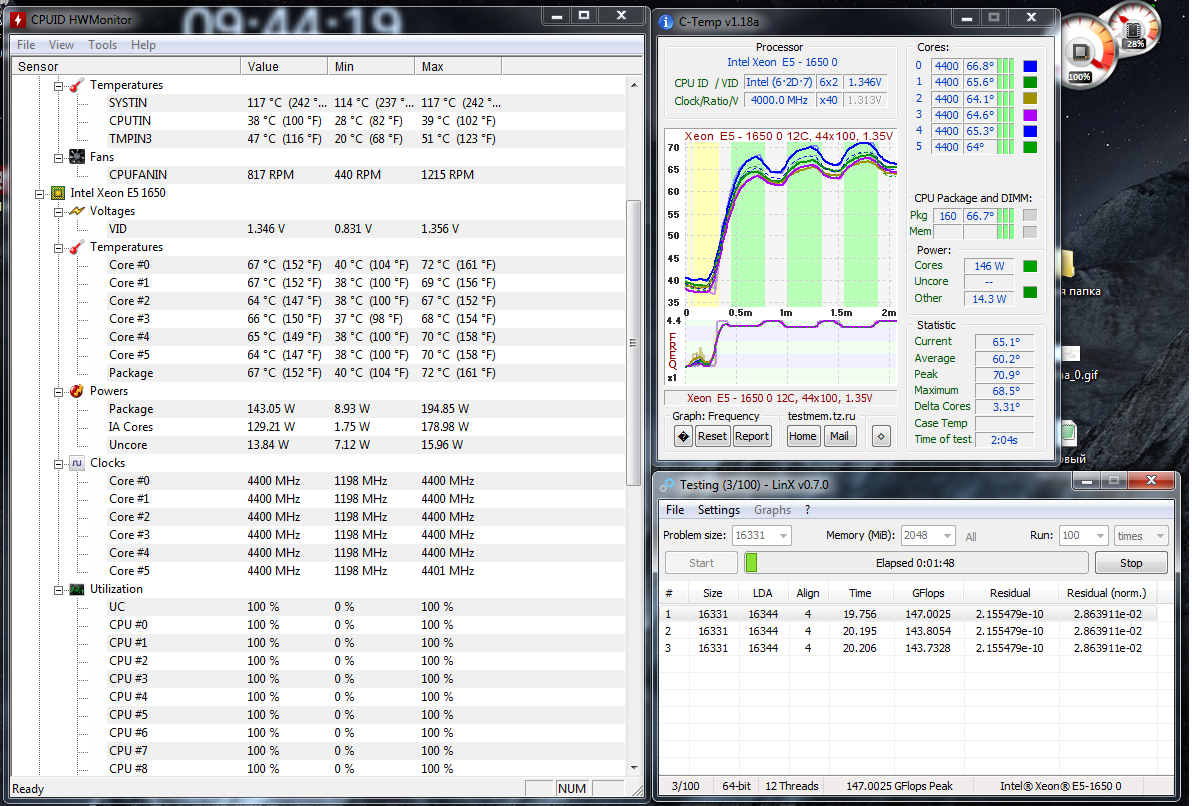 Проц работает на 44 множителе, винда грузится, тесты проходят.