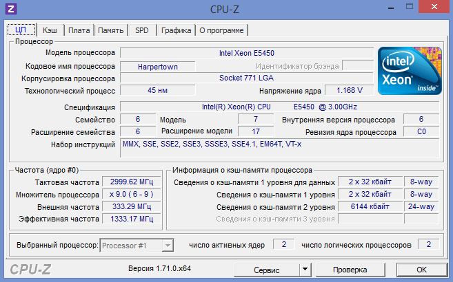 Скрин CPU-Z