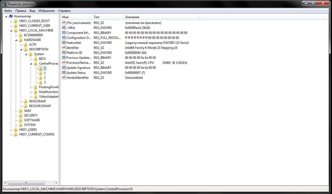 lexa Покажите скриншот regedit с раскрытым ключом реестра HKEY_LOCAL_MACHINE\HARDWARE\DESCRIPTION\System\CentralProcessor\0 Из Windows 7, конечно... P.S. С модифицированной версией BIOS 11b пробовали?