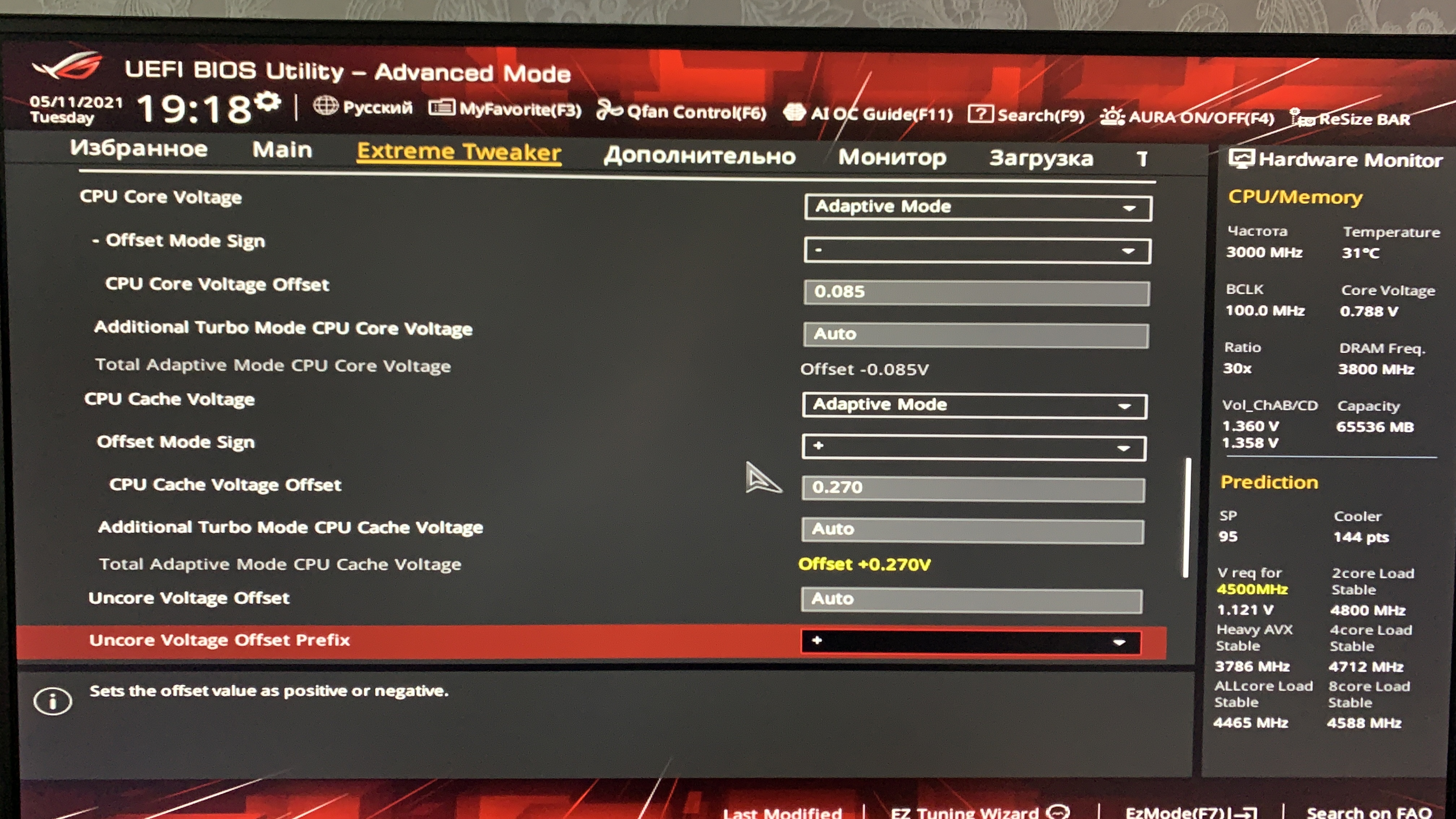 Ничего там не задирается, стоит adaptive со смещением -85 mV, 0,27 V набрасывается на кеш.Подозреваю неудачную установку водоблока или брак TIM.И входное напряжение все же маловато, как тут уже отмечали.Ну хотя бы 1,8 V