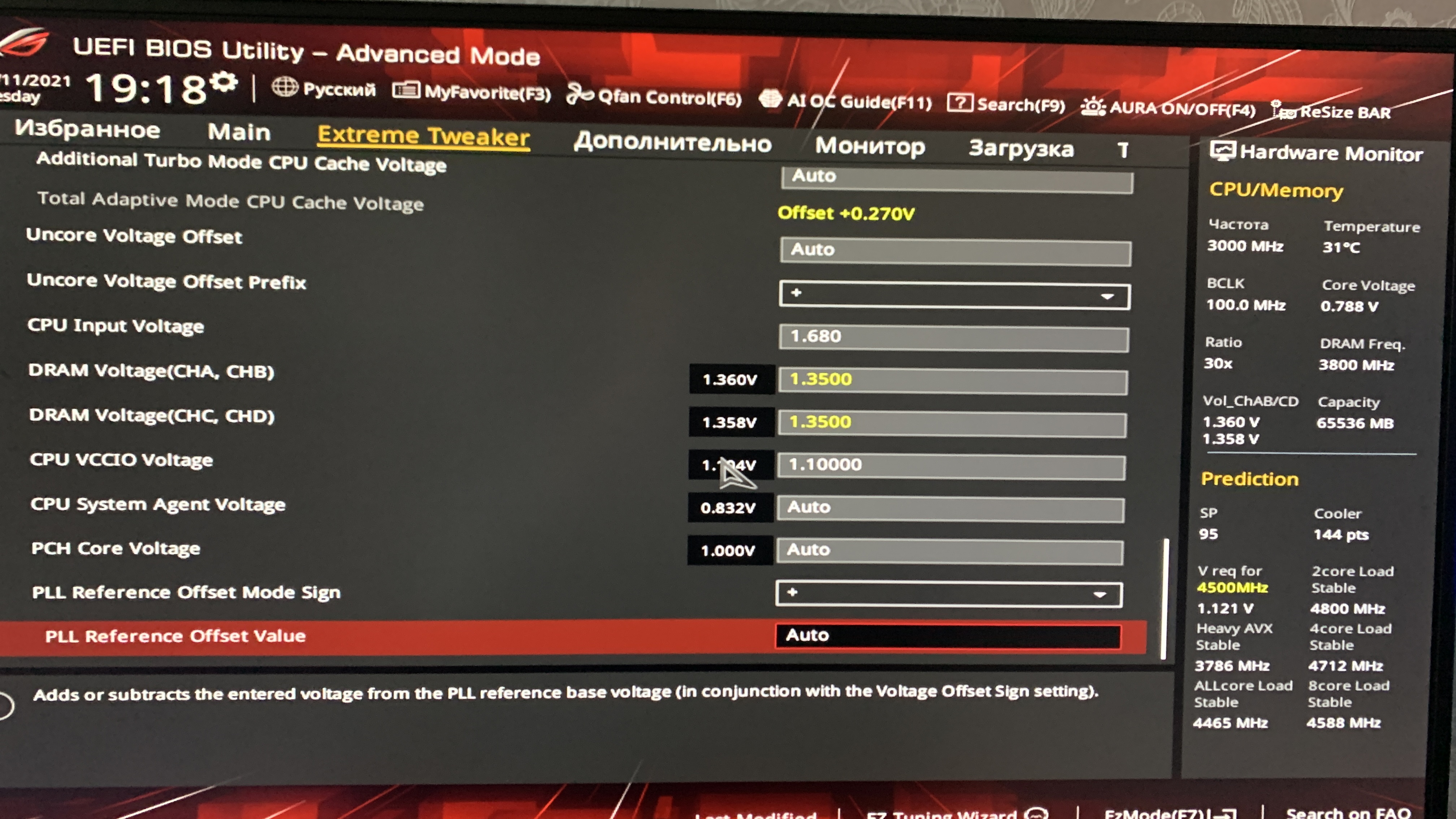 И Что 110 градусов + низкий VCCIN??? В начале теста падение, но на протяжении всего теста 4580-4610МГц при чем по всем ядрам! + 3,2 Кэш! Да входное напряжение у меня 1,8 и прекрасно процессор работает! и Оффсет -0,09. А что надо чтоб грелся до 110С???