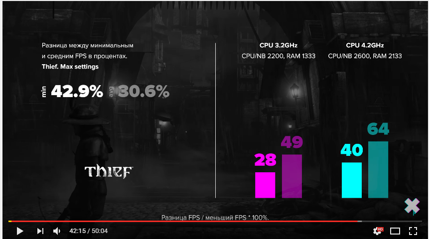 Годная инфа не плохо было бы добавить в шапку , но давайте будем честны не в упрек "шиногонов" разница показана на 3.2 и 4.2 и чего тут ожидать (еще бы прироста не было ) , прирост был бы не значителен если сравнили на одной частоте только разгон памяти и NB Но как шок результат пойдет . Видео было не про доказательство влияния разгона по "шине" на производительность но все же "лимуров" затронули , предположу частота процессора на вскидку 80% результата разгона