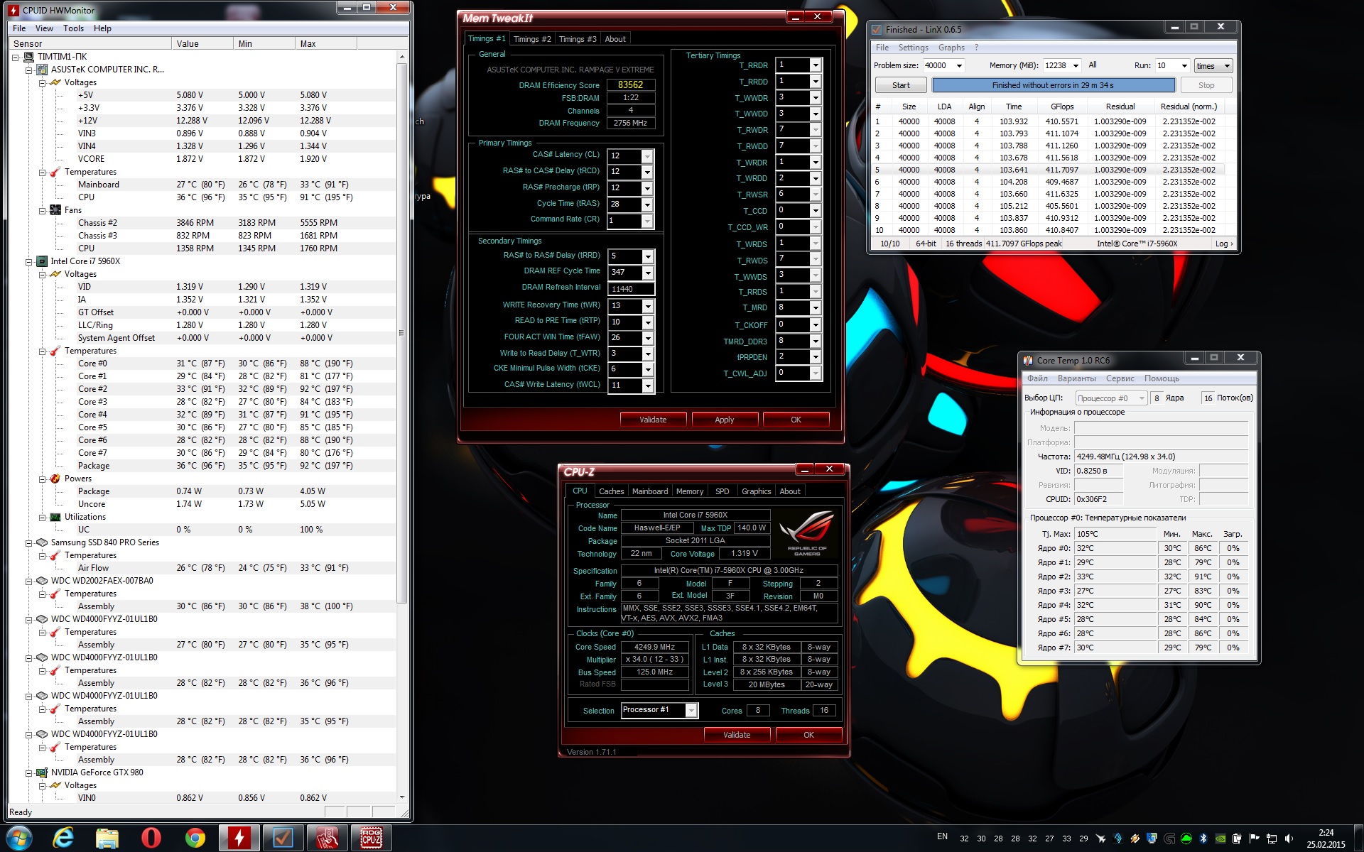 remmer29 вот сейчас отмолотил час LinX, СВО Corsair H105, комната 9 квадратов, 5960X,4 ГГц, температура выше 82 градусов не поднималась. 100 градусов про LinX - у меня такого никогда не было, ни на 3960X, ни на аналогичной Ivy...