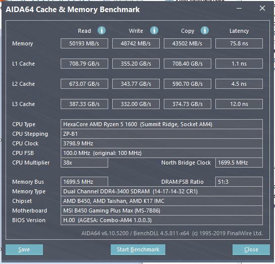 Добрый день. Прикупил себе систему на Р5 1600. Покрутил своими кривыми ручками биос и вот что вышло. не стремлюсь к идеалу но хотел бы знать, как можно оценить этот разгон? Стоит ли так оставлять? Сравнивал с другими результатами на форуме, вроде ничего так, единственное не понял латентность при тесте аидой 75,8. Это нормально для этого проца? Подскажите в какую сторону разгона двигаться. Температура в стресс тестах держится около 70. MSI b450 gaming plus MAX Ryzen 5 1600 Crucial 3200 cl 16 AES rx 588