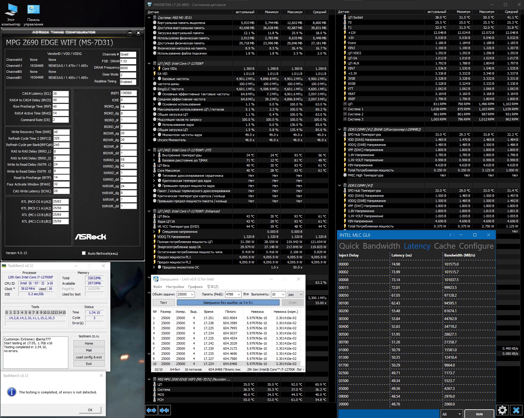 ♻️ Про разгон памяти На non-K процессорах затруднен разгон памяти даже при наличии соответствующей материнской платы. Все дело в напряжении SA (System Agent), которое намертво блокируется на уровне 0.95-0.96В, из-за чего поднятие частоты памяти выше 3466-3600 МГц становится практически невозможным, да еще и с адекватными этим частотам таймингами.