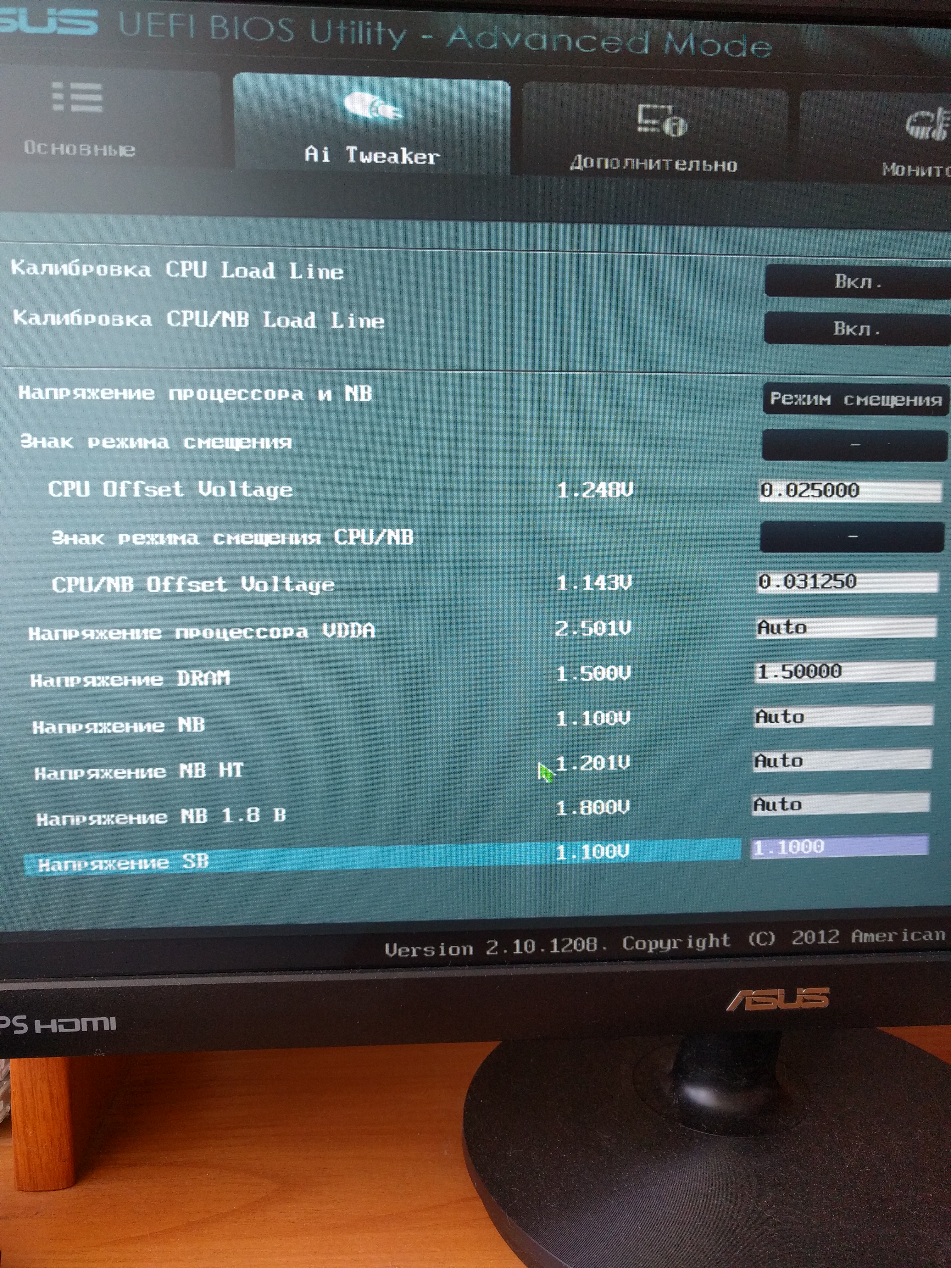 Вы сами смещение для cpu/nb задавали ? что то непойму тогда какое напряжение по умолчанию у вас если стоит 1.143 с офсетом.Что то мало для nb выходит тогда стоковое напряжение 1.112v.лучше все же у асусоводов спросите -мне не совсем чтот понятно.такого низкого вид не видел ранее для cpu/nb