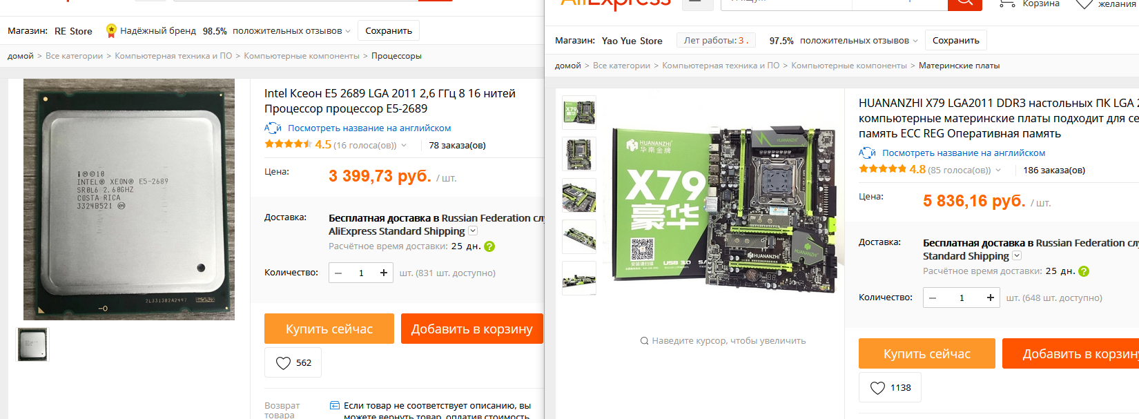 В тоже время на али сейчас за ~10к можно взять зеон 8ядер/16 потоков и мамку на 2011