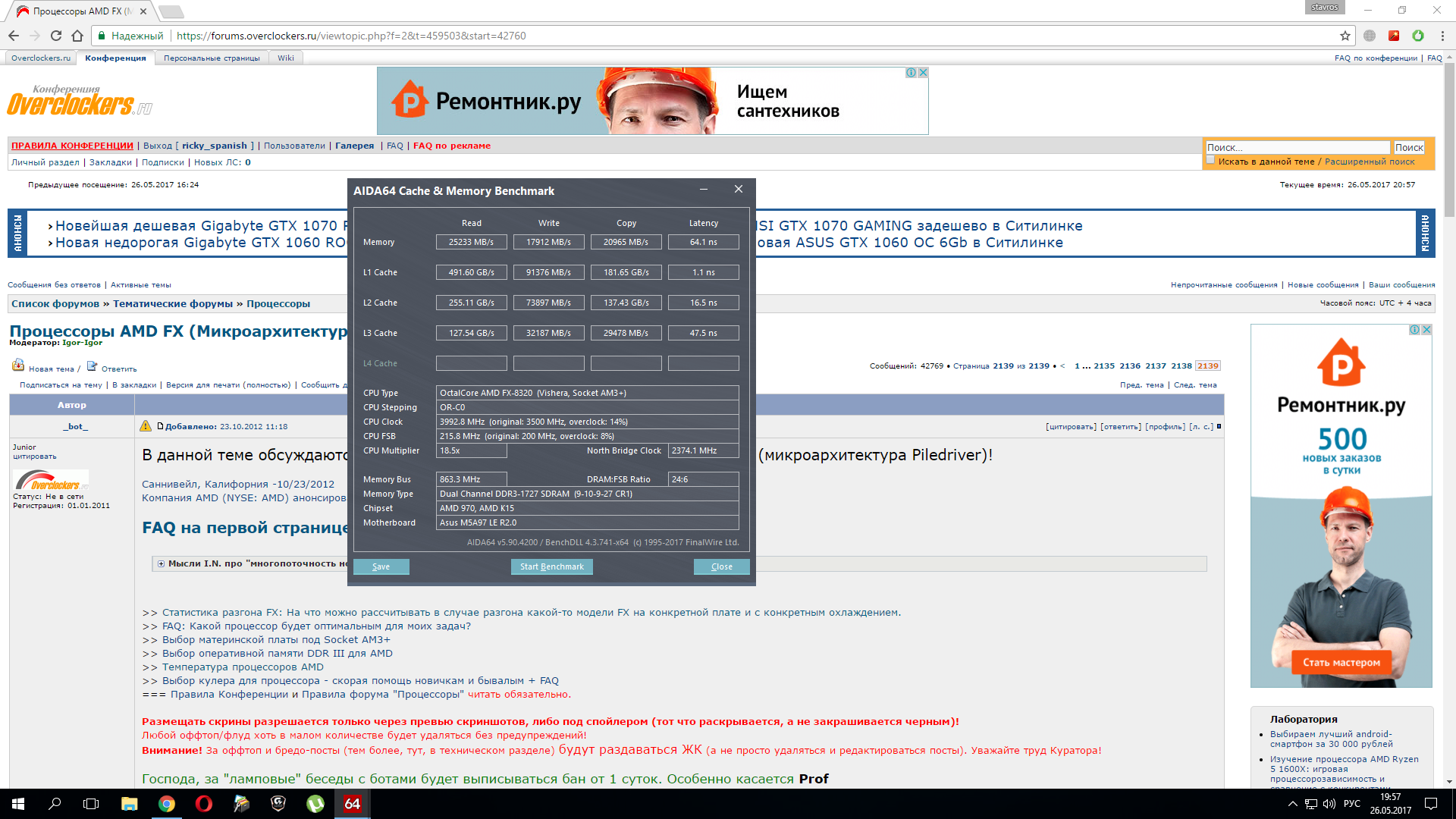 в общем вернулся к вольтажу предыдущему цпу 1.248-1.272, и цпу.нб 1.187, собсно результат +- тот же, проходил 3 раза подряд, я хз как аида читает, но порой подряд проходить нужно, чтобы результат лучше получился, хоть write опять схалявил, обычно он более 17. судя по всему вольтаж тут роли не играет, может таймингами побаловаться, но на 9-9-9 у меня завис в винде., вольтаж памяти 1.5, пробовал увеличить, но тестирование на х265 ничего не дало.