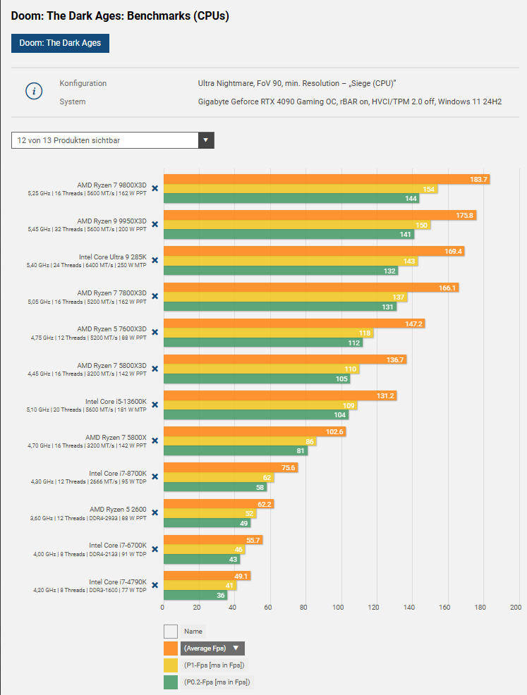 Для этих игр, кроме сталкера последние цп избыточны. Большинство из них полностью играются даже на 6 ядрах "скайлэйка" и ZEN2. Часть из них даже на трёх ядрах с SMT будет приемлемо бегать. Им хватит камней типа 12400, 13400(14400), 12600, 5600, 5700x. Они стоят примерно ничего. Все эти камни в бюджет за ~10 рублей вписываются. А весь комплект укладывается в 15-30рублей. Вот ремастеру обливион с оптимизацией уровня "обливион", чтобы играть и поменьше гореть желательно хотя бы 4070+x3d или Intel RaptorLake или ArrowLake с настроенной память, кэшем побольше и некоторыми оптимизациями через ProcessLasso. В принципе тот же сталкер не далеко ушёл по "оптимизации". Причём варианта, где он не будет фризить вообще не существует вне зависимости от платформы.