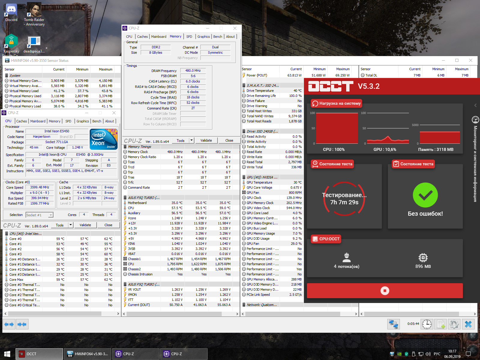 "Взял высоту FSB Fr - 475. Потом убавил 470 (4.2Ghz), все заработало нормально Стрес тест прайм и Линкс конечно выдает синьку через какое то время. Но в инете серфил по 30+ вкладок, ютубы итд., пабг поиграл, нормально не было никаких замечаний. Запустил много файлов видео 1080 рендер выставлен на проц, загрузка на 100%, температура выше 60 не поднималась (это при том что у меня все еще на полу лежит). Короче в моем обычном пользовании пк все Ок. Добиваться стабилити в стресс тестах, нужна куча времени. (Я так не гружу процы, и не играю уже давно хотя хочется засесть, но видюха "затычка" пока не позволяет)