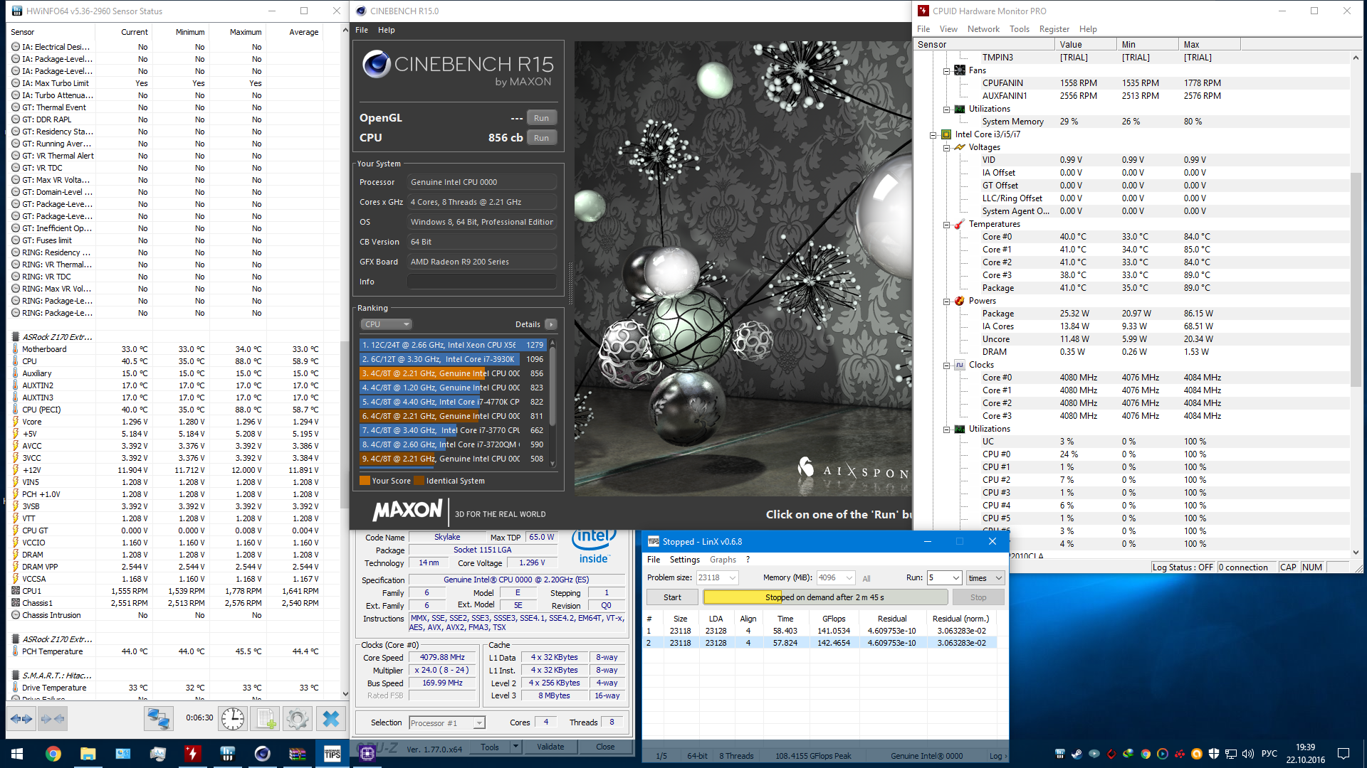 ZETT у меня на 4,0 ГГц 2133 ( где-то в районе или 2050 или 2202) 860 баллов показал