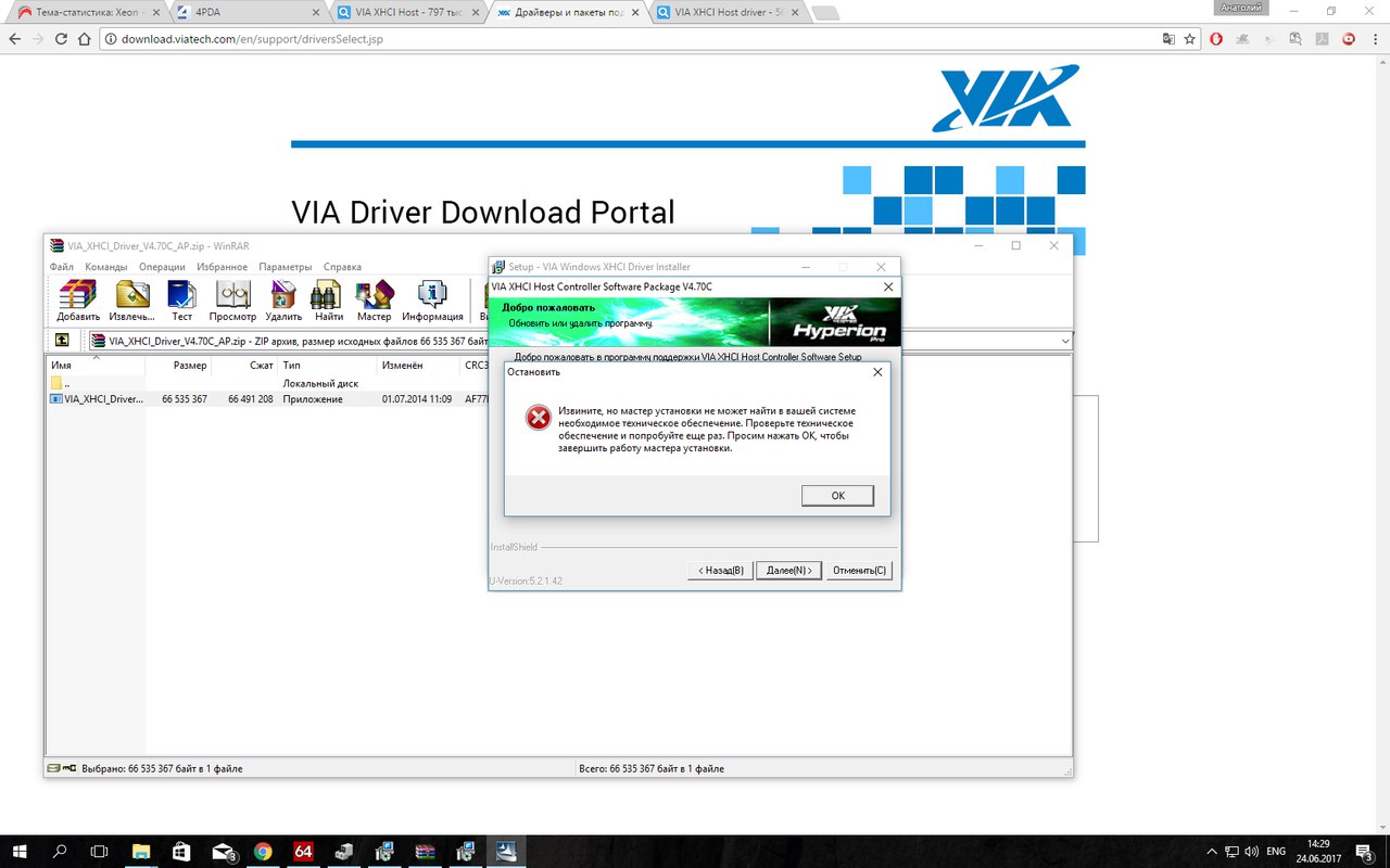 Решил сегодня перекинуть фильм на переносной диск по USB 3.0, подключаю диск, диод на нем загорелся, а винда его не видит. Ну , думаю, не беда, установлю драйвера с диска, что вместе с матерью шли(Huanan 2.47). При установке вылазиет следующая ошибка(причем скачал драйвера и с сайта VIA). Как оживить порта 3,0?