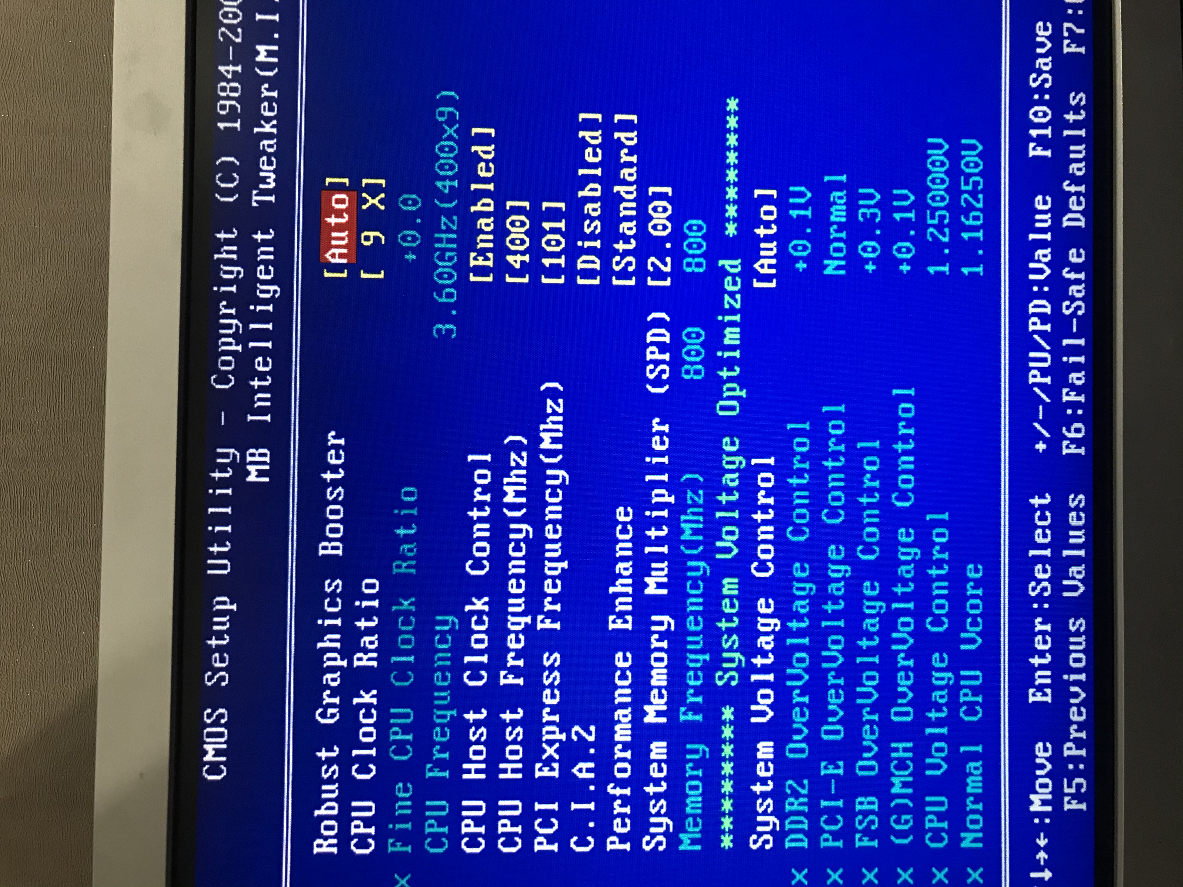 Flixtron выключи параметр с первого фото "full screen logo" поставь вручную на проц 1,35в со второго и сфоткай какие цифры будут на черном экране загрузки биос. для простоты можешь поискать в параметрах boot: Quick boot - и его тоже выключить зы напиши что за мать